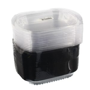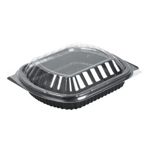 Black 1 Compartment Microwavable Plastic Food Tray Container & Lid Combo