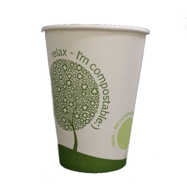 Fully compostable 7.5oz pla vending cup.